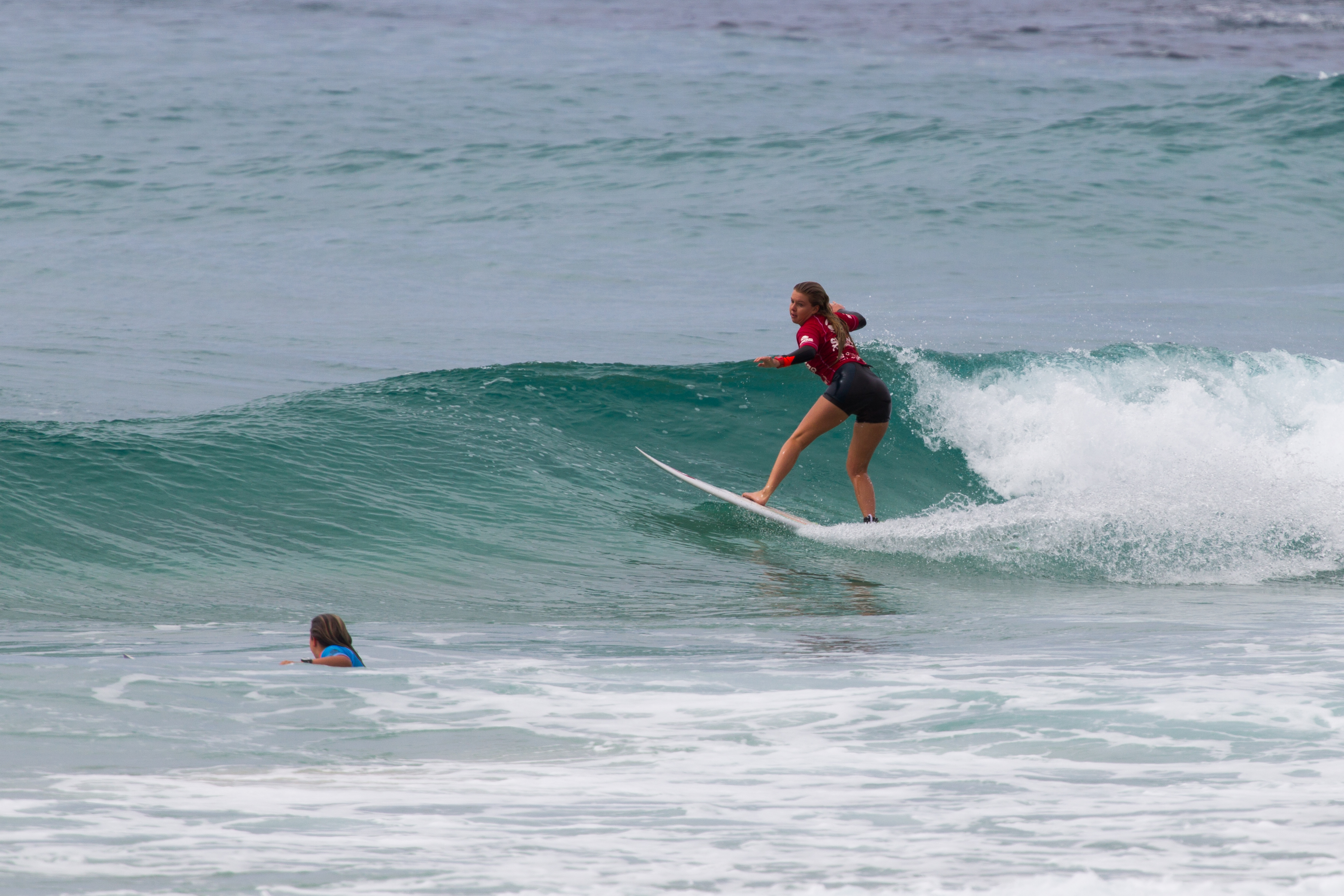 Heat two of the Under 18 girls division saw an upset in the water as Holly-Sue Coffey (Coolangatta, Qld) scored an 8.5 score (out of a possible 10) for her first wave of the heat to narrowly defeat event one runner-up Lucy Callister (Palm Beach, Qld), relegating fellow counterparts Laura Poncini (Moffat Beach, QLD) and Ebony Wilson (Elanora, QLD) into third and fourth respectively.