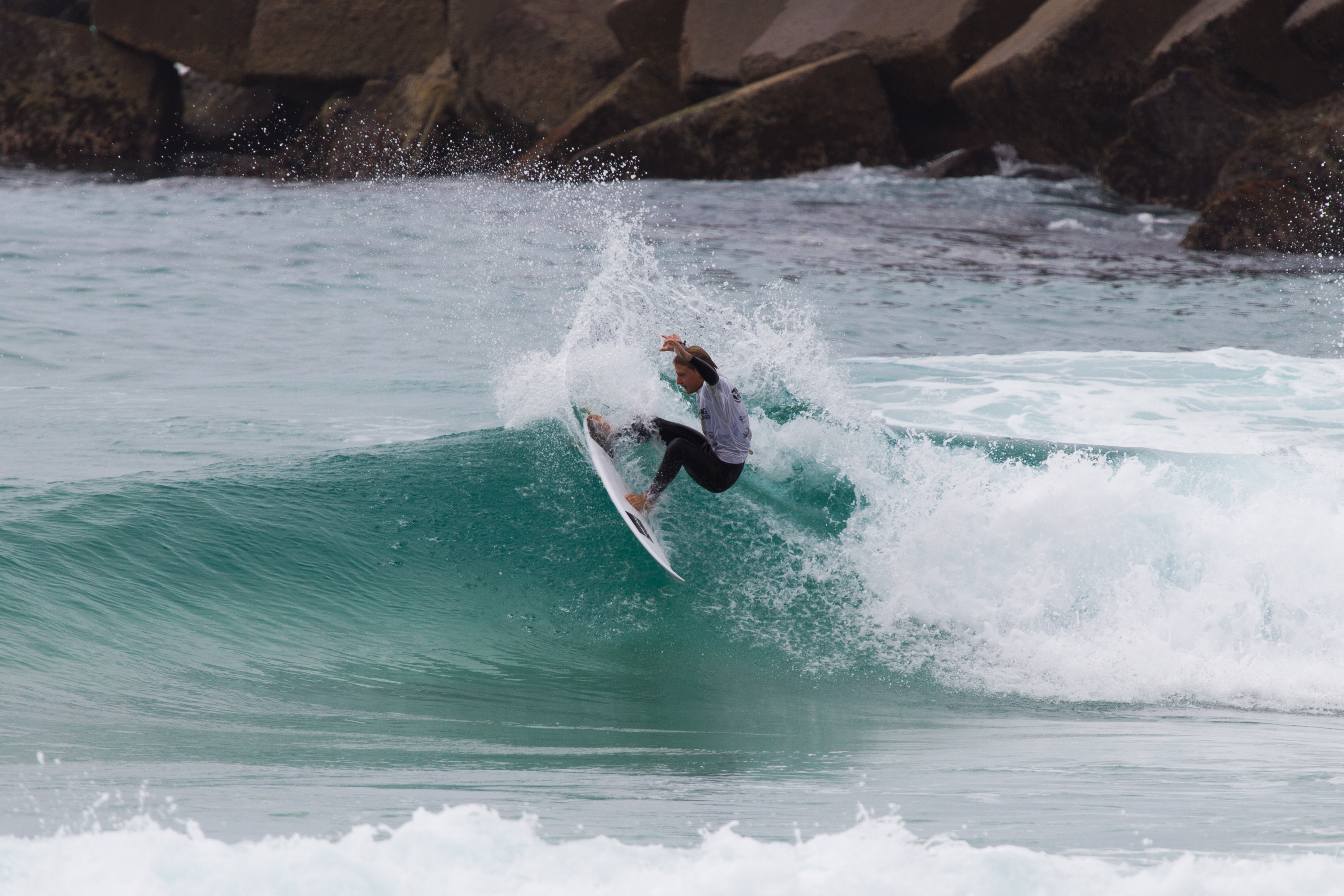 Top seed Quinn Bruce (Coolangatta, Qld) made light work of his opening round heat against Sam Littlechild (Mermaid Beach, Qld) and Liam Kelly (Wooloowin, Qld), defeating both respectively after scoring the highest heat total in day one of competition. Both Quinn and Sam will progress straight through to the Under 18 Boys semi-final scheduled to run tomorrow afternoon where they will shape up to the likes of Toby Mossop (Burleigh Heads, QLD), Aaron Kelly (Sunshine Beach, QLD) and Ethan Ewing (Point Lookout, QLD) to name a few.